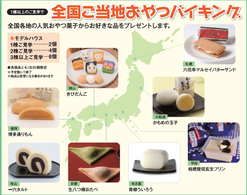 ・モデルハウス1棟以上ご見学~3棟以上ご見学で最大6個プレゼント!