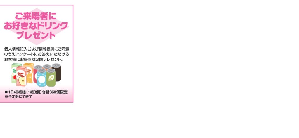 ・アンケートご回答の方に冷たいドリンクをプレゼント♪
