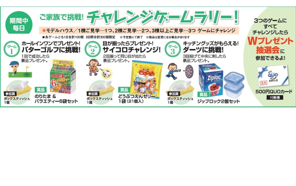 ・モデルハウスご見学ごとに全てのチャレンジゲームに参加可能