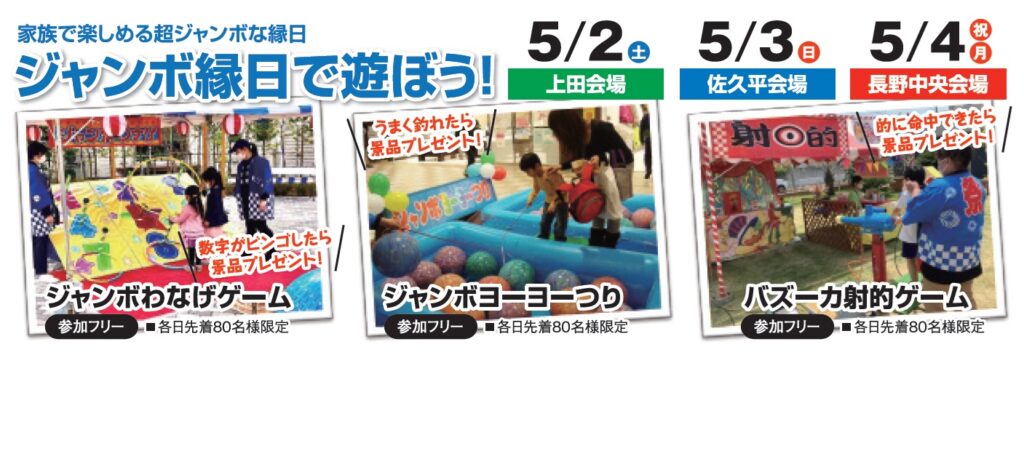 5/2(土)上田 5/3(日)佐久平 5/4(月)長野中央
