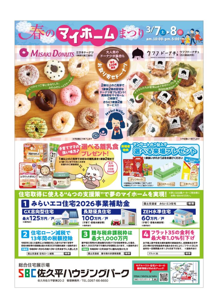 「みらいエコ住宅2026事業補助金」「住宅ローン減税」「贈与税非課税枠」「フラット35の金利引下げ」など、お得な制度について詳しくは各モデルハウスの担当者にご相談ください!