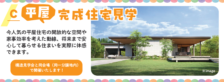 🚩構造見学会と同会場(同一分譲地内)で開催いたします。