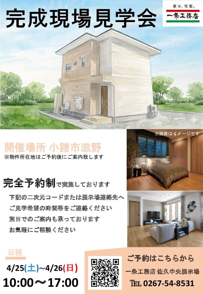 HOME 一条工務店[佐久中央展示場] ●ICHIJO●【4/25(土)~4/26(日)】完成現場見学会を開催いたします!