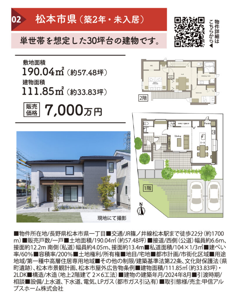 宅地建物取引業免許/国土交通大臣(3)第8553号 (公社)長野県宅地建物取引業協会会員 (公社)首都圏不動産公正取引協議会加盟 ■広告主/甲信アルプスホーム株式会社 〒390-0847 長野県松本市笹部1-3-6 TEL.0263-25-0031 ■広告有効期限/2026年2月28日