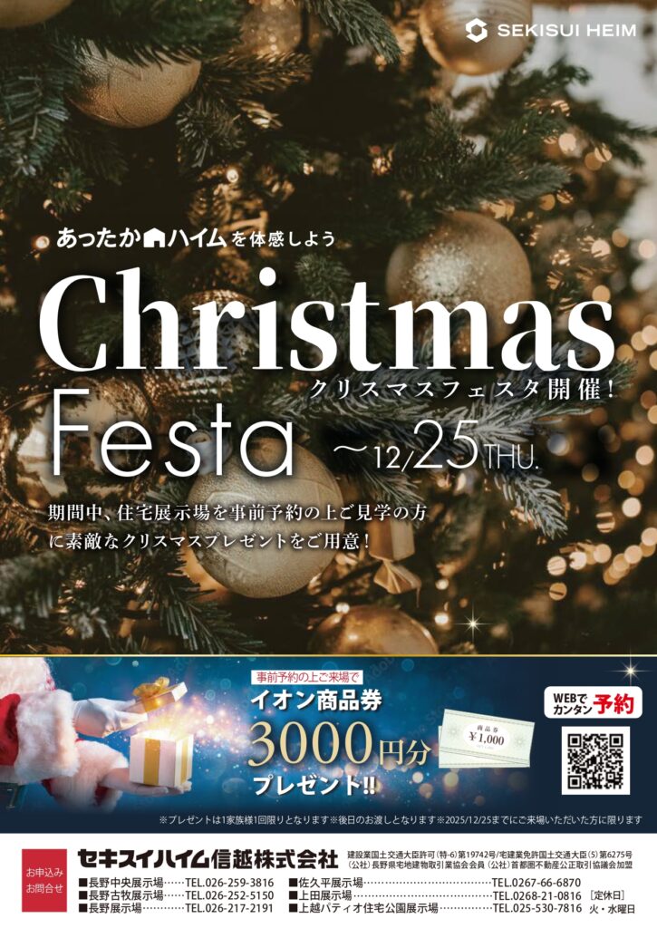 ただいまセキスイハイムでは 『クリスマスフェスタ』 を開催しております!