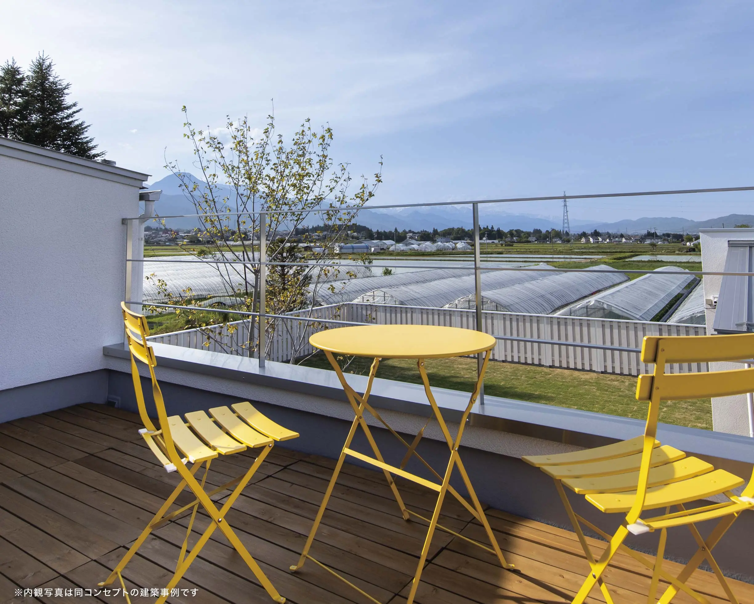 家族みんなで寝転がり、天体観測を愉しめる約4.5帖のスカイバルコニーが魅力の住まい。洗濯物干しや日向ぼっこ、ピクニックも楽しめるアウトドア空間です。寝室壁面には造作の本棚とベンチ、大きなFIX窓を設け、季節を感じながら読書を愉しめるスペースを設えました。